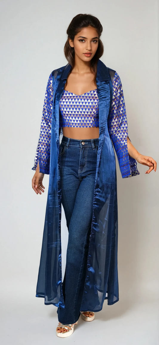 Bandeaux, Cropped Sheer Jacket & Skirt Set