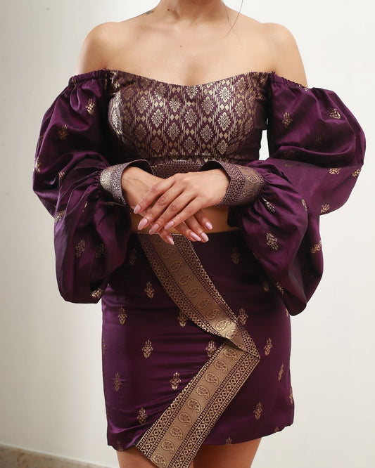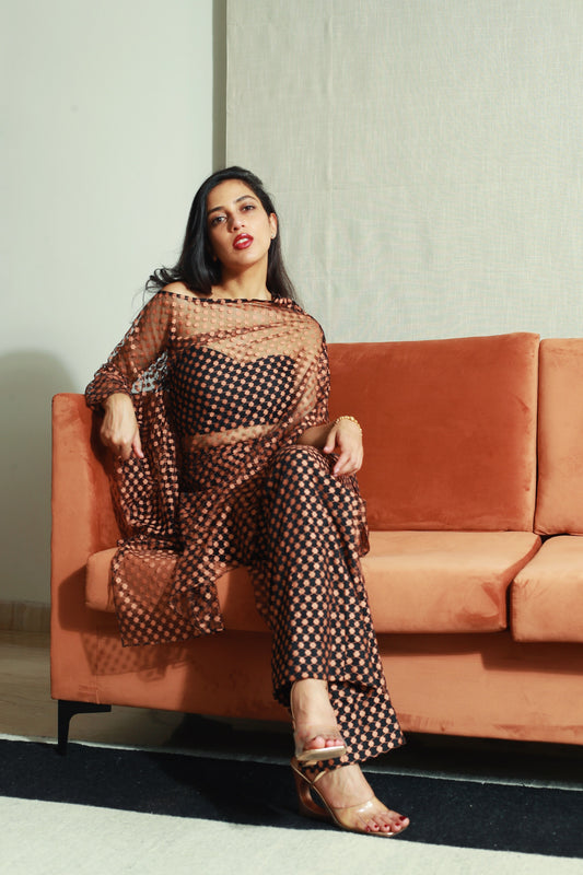Sequinned Corset with Sheer Cape & Slit Dhoti Skirt
