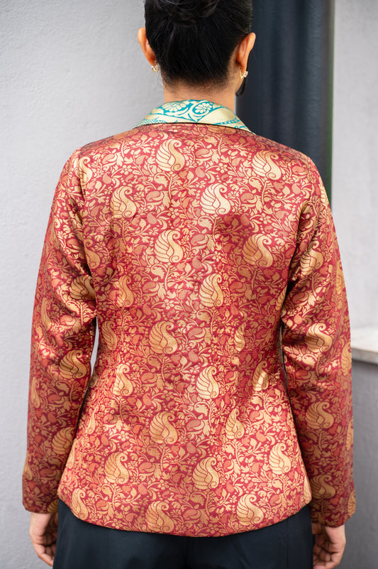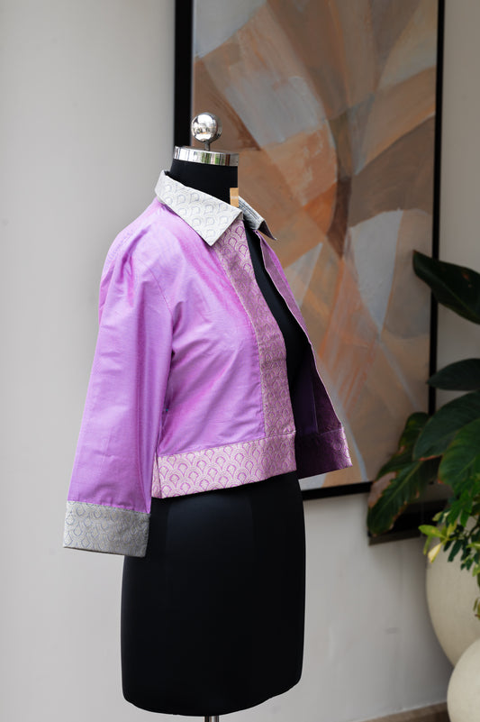 Cropped Full-Sleeve Blazer With Zari Embroidery