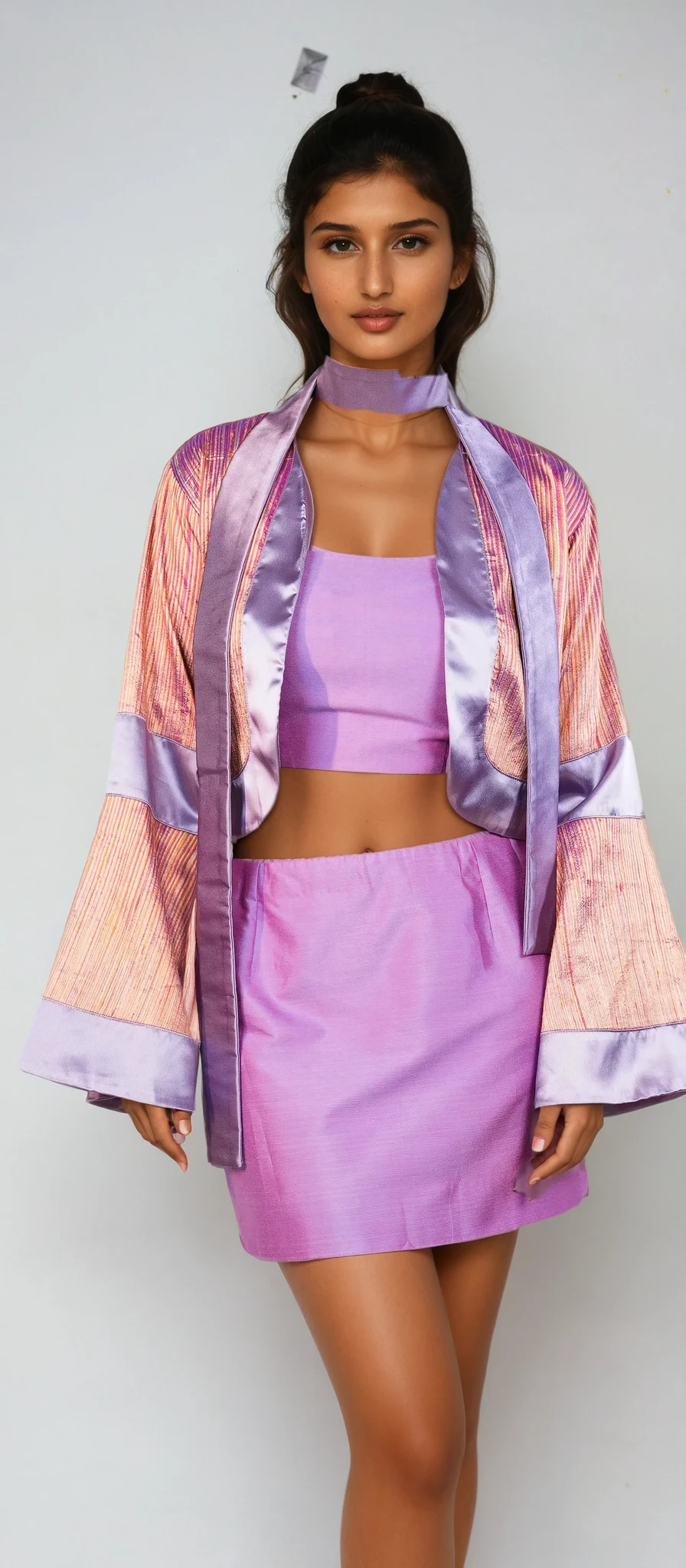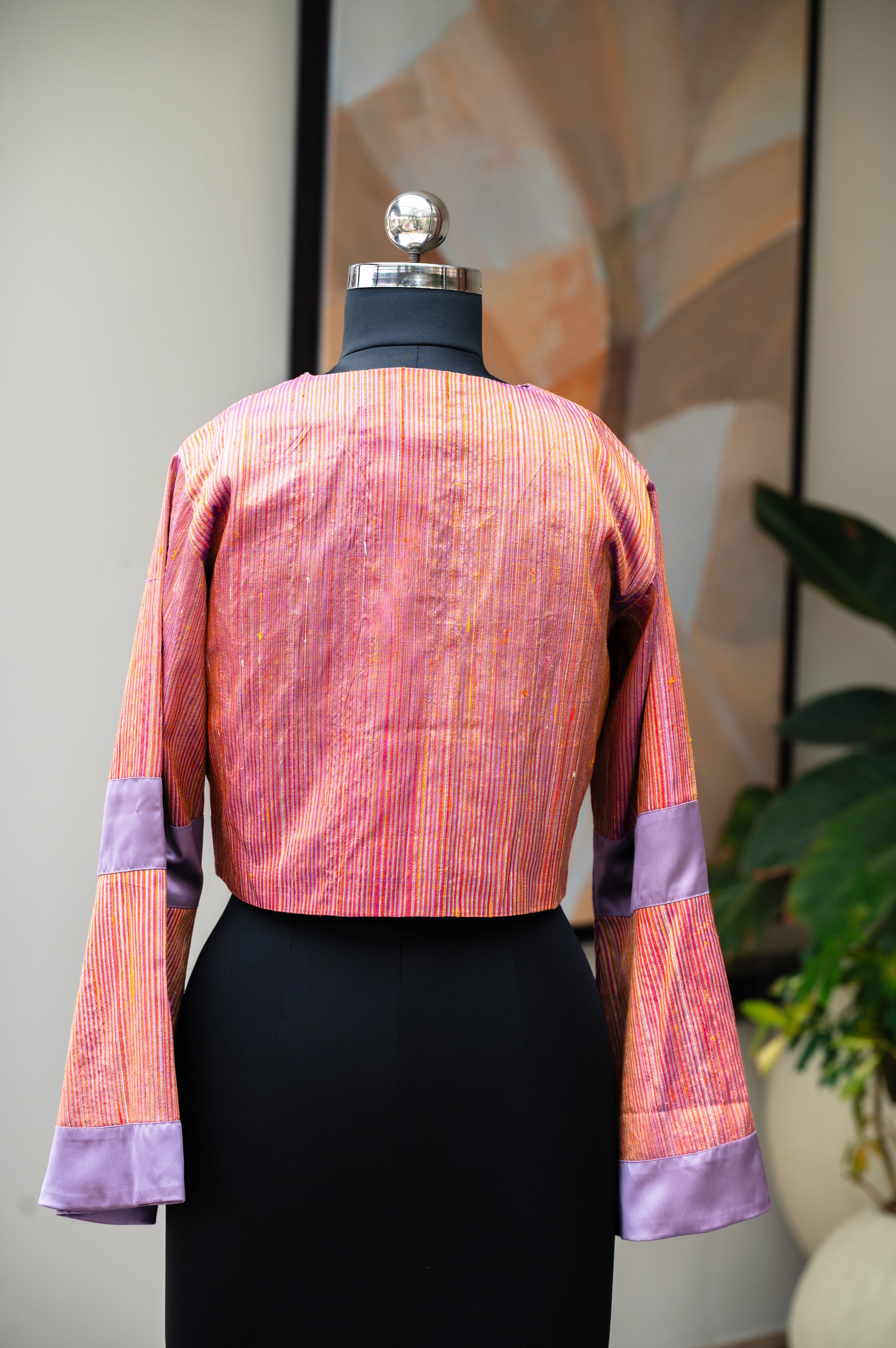 The natural shine and richness of raw silk paired with satin details really makes this jacket sublimely rich, yet with a playful, colourful twist.