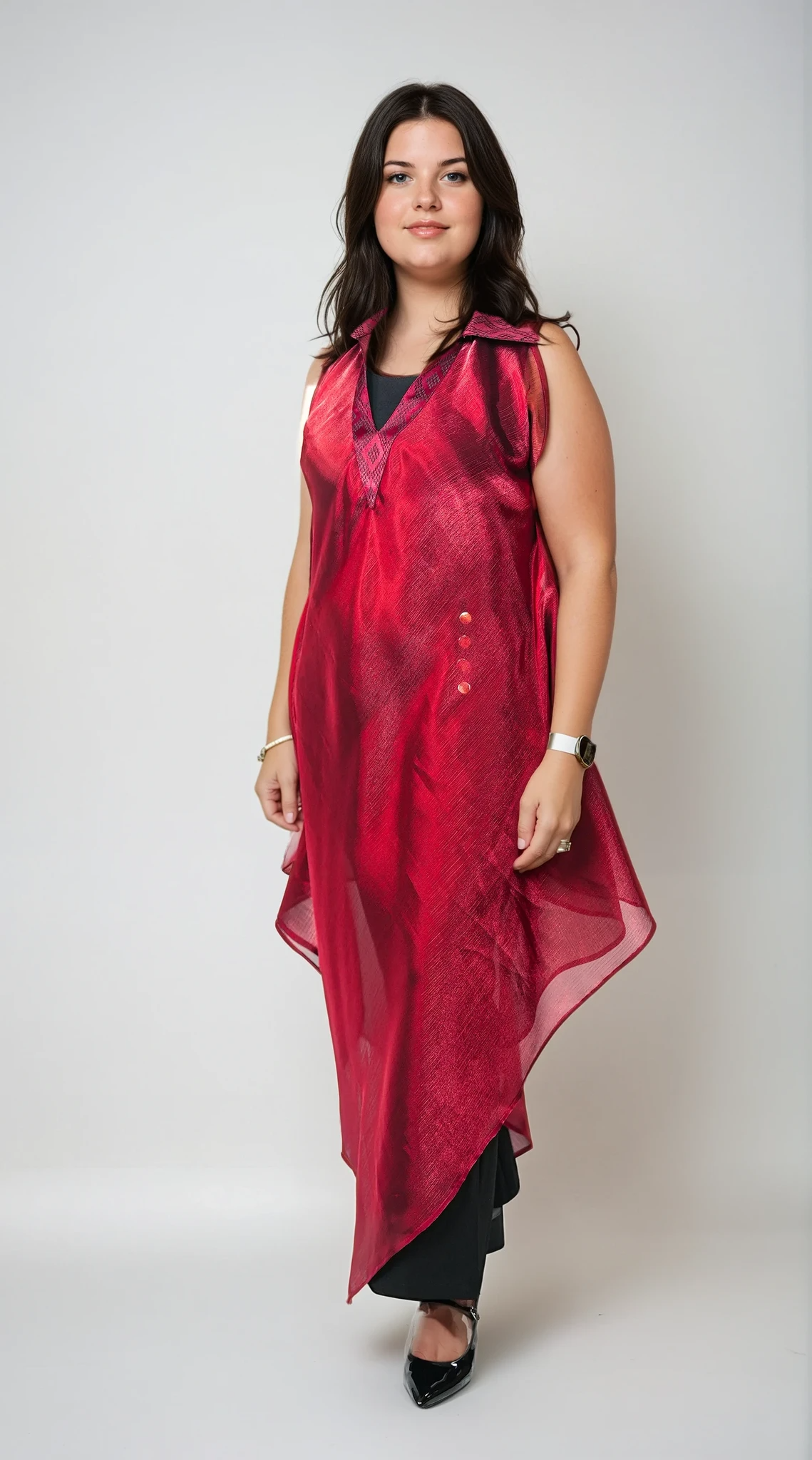 Sheer and shimmery, this sleevless poncho-esque design is the easiest thing to throw on and turn a basic outfit into a statement look.