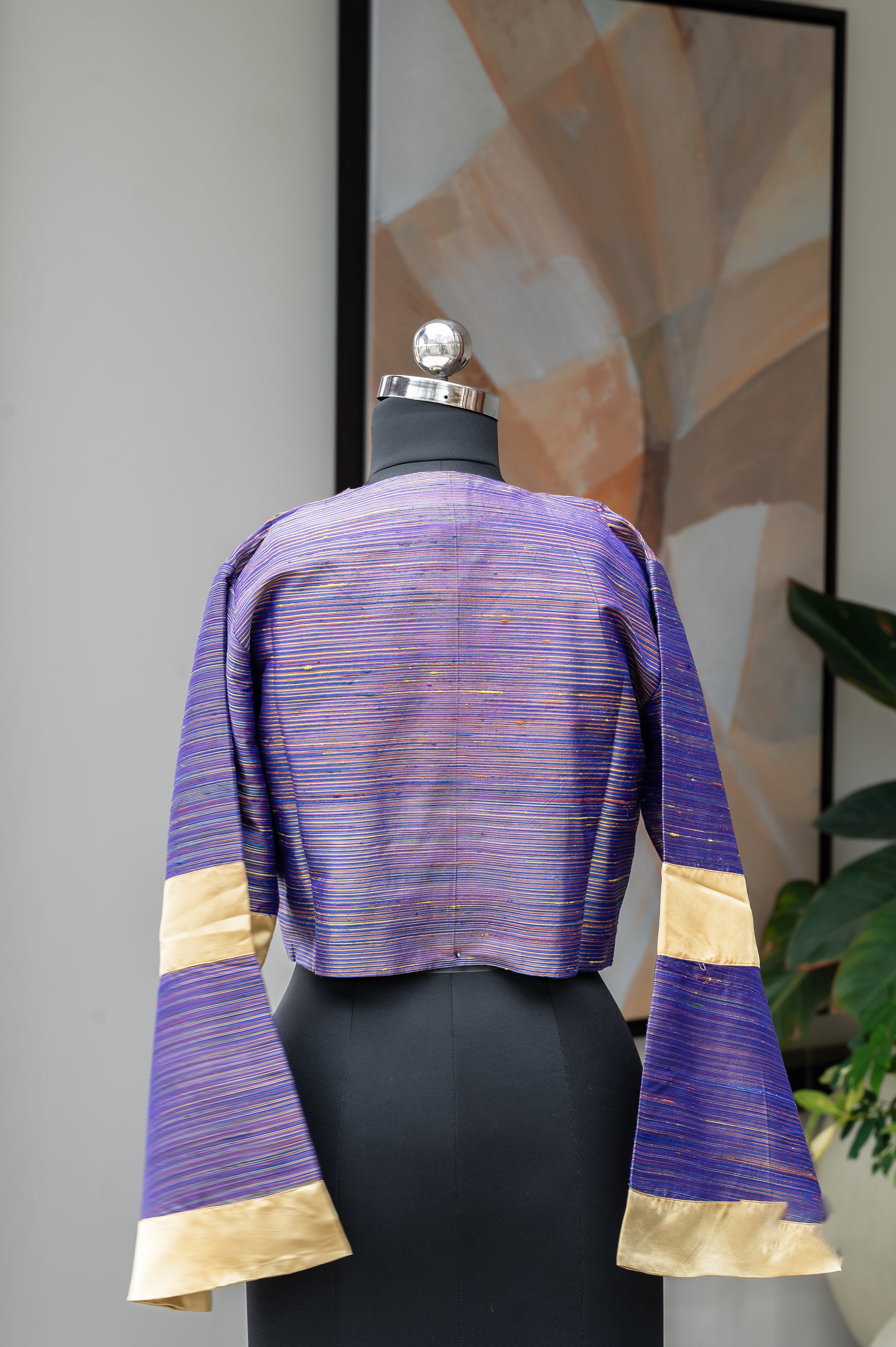 The natural shine and richness of raw silk paired with satin details really makes this jacket sublimely rich, yet with a playful, colourful twist.