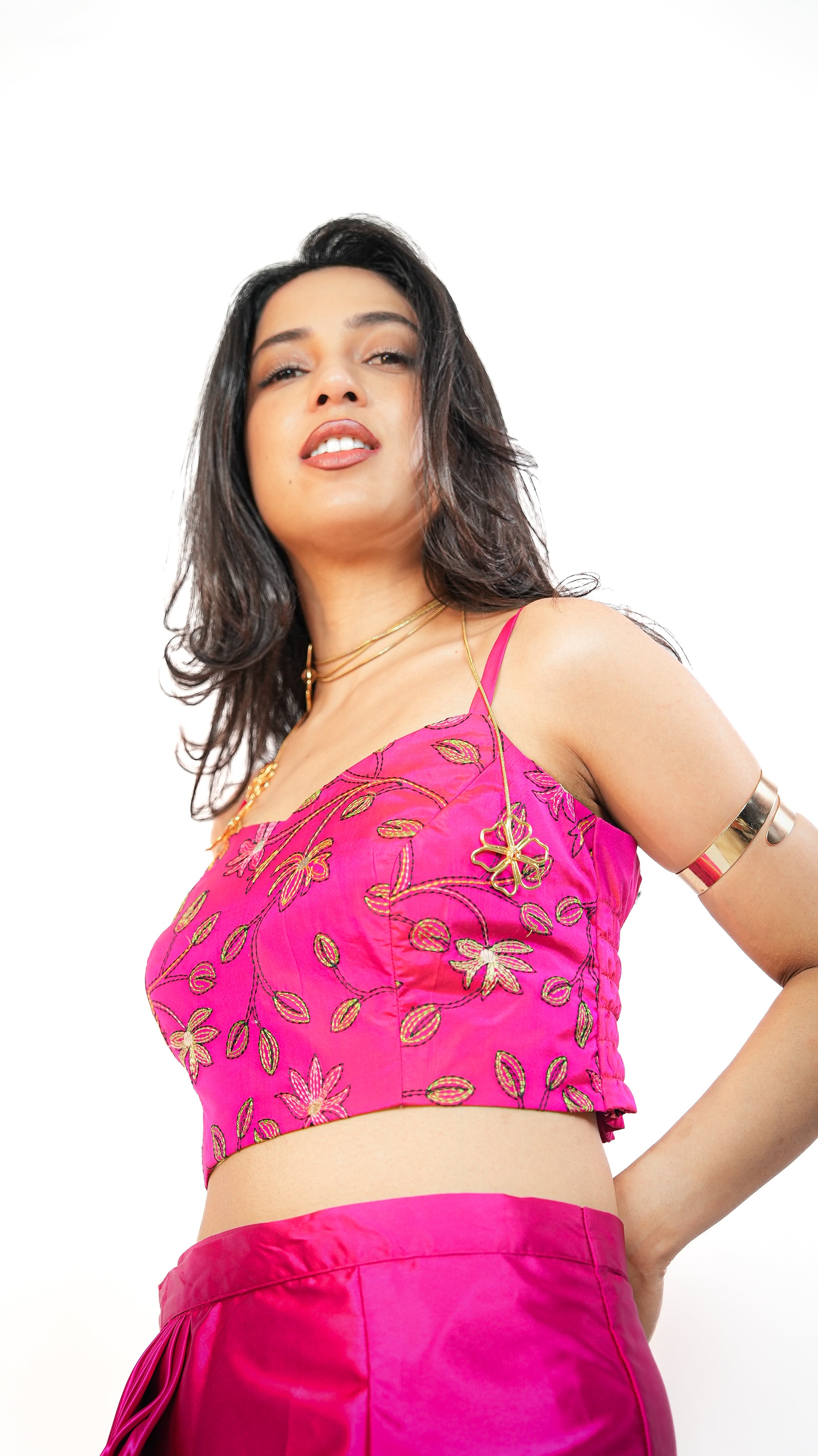 Crafted from luxurious fabric, it features floral embroidery on a vibrant bodice. Perfect for day-night occasions or when you want to make a fun, flirty impression.